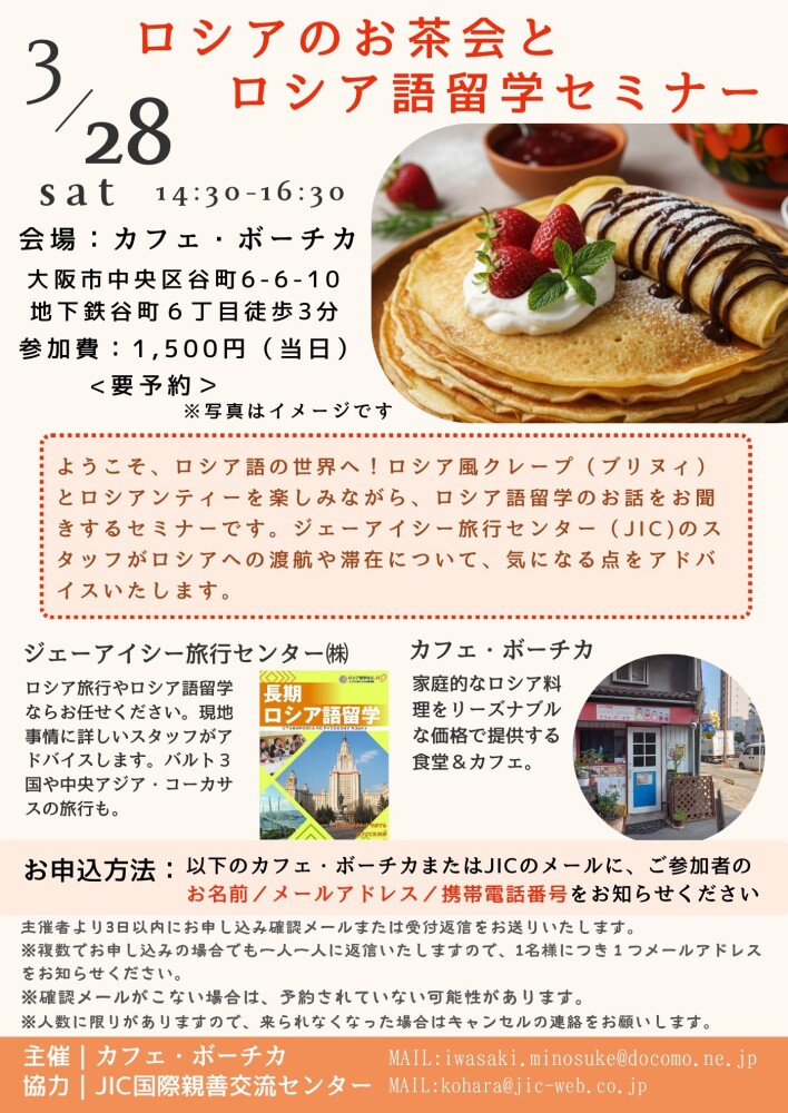 大阪・谷町のロシアカフェ・ボーチカにてお茶会とロシア留学セミナーを行います。