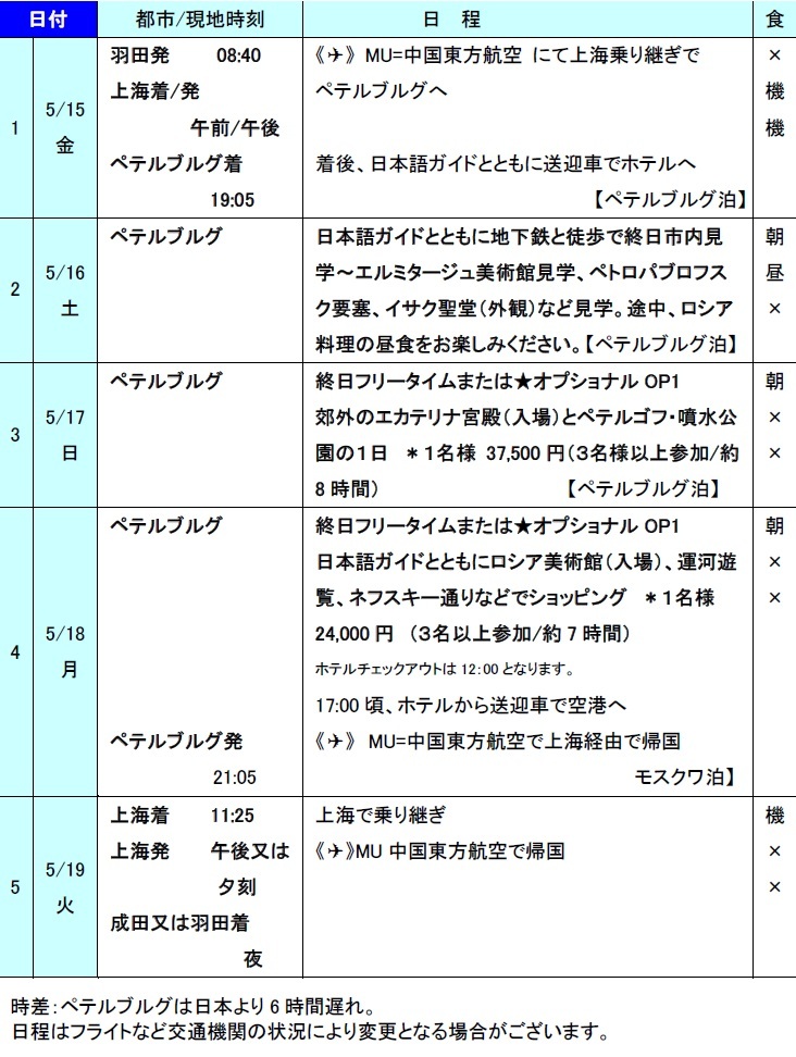 - 中国東方航空利用でサンクトペテルブルグに同日着。